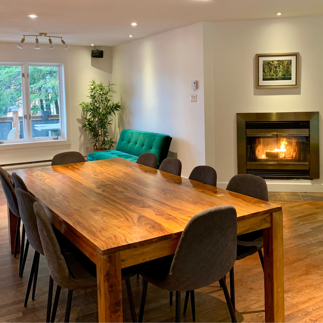 Imaginez vos échanges autour d’une grande table de conférence en bois massif, la douce chaleur d'un foyer au bois en arrière-plan, et l'accès direct à une terrasse privée pour des pauses inspirantes. Modulable selon vos besoins, l’espace propose différentes configurations avec des divans repositionnables, des petites tables ou une grande table centrale. En plus, vous bénéficiez de tous les outils essentiels pour rendre vos événements fluides et mémorables !